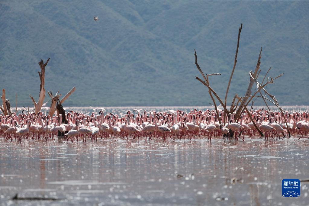 這是11月6日在肯尼亞博戈里亞湖拍攝的火烈鳥(niǎo)。