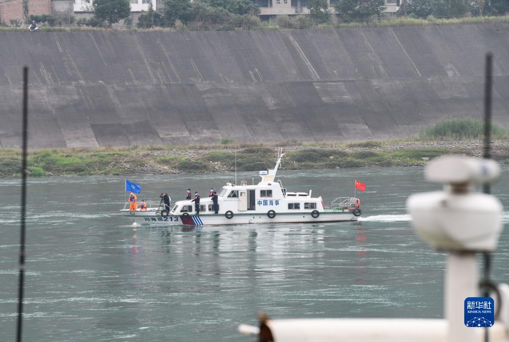 11月9日,在四川省宜賓市敘州區,演練人員開(kāi)展江面水體采樣工作。