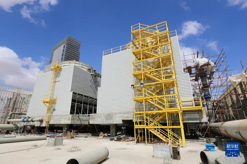 這是10月11日在埃及新行政首都中央商務(wù)區項目現場(chǎng)拍攝的建設中的區域能源站。新華社記者 隋先凱 攝