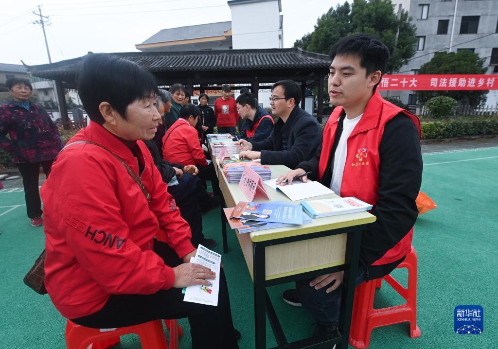 11月9日,在杭州市臨安區太陽(yáng)鎮上太陽(yáng)村,法律顧問(wèn)趙黃炳(右一)解答村民咨詢(xún)。