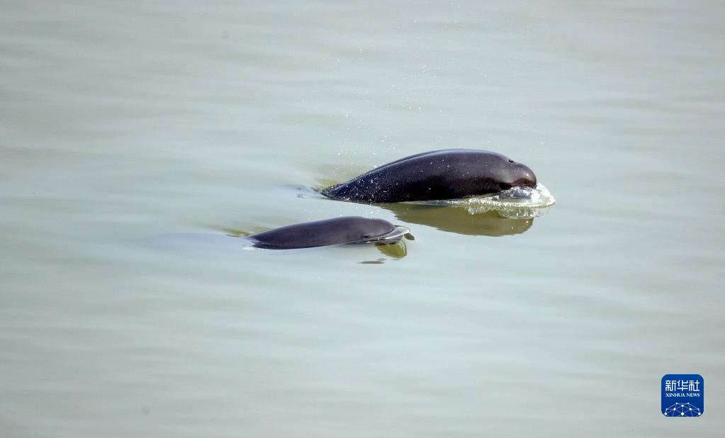 這是11月8日拍攝的長(cháng)江葛洲壩下游水域中的江豚。新華社發(fā)(文振效 攝)