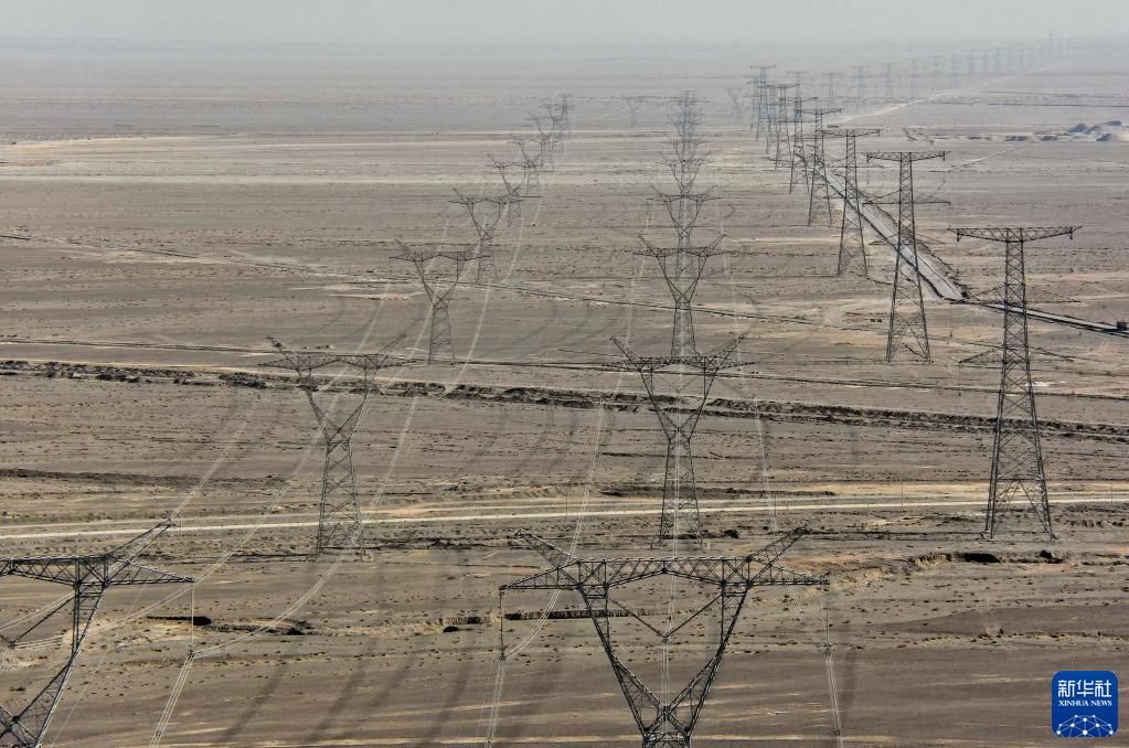 這是11月9日拍攝的新疆哈密至甘肅敦煌750千伏輸電線(xiàn)路(無(wú)人機照片)。
