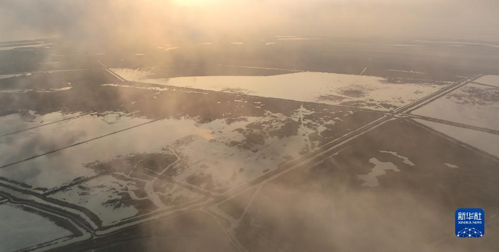 晨曦中的鹽城濕地珍禽國家級自然保護區景色(11月8日攝,無(wú)人機照片)。