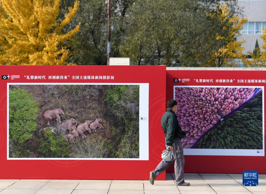 11月10日,觀(guān)眾在參觀(guān)“禮贊新時(shí)代 再創(chuàng )新偉業(yè)”全國主流媒體新聞攝影展。