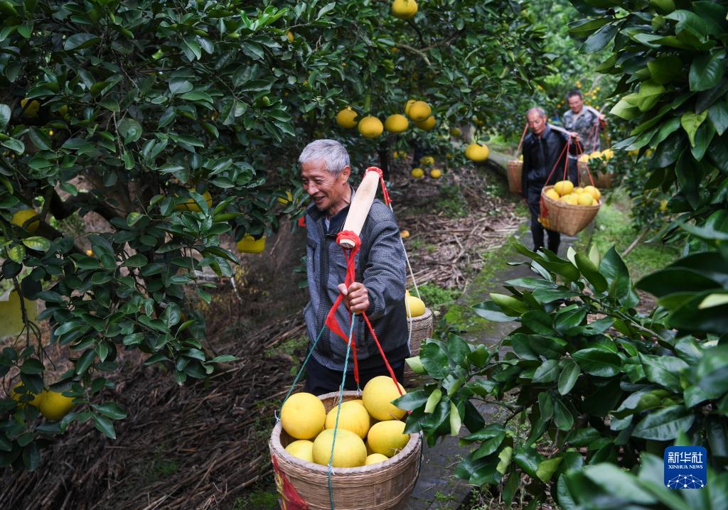 11月9日,在重慶市梁平區合興鎮龍灘村,村民在挑運柚子。
