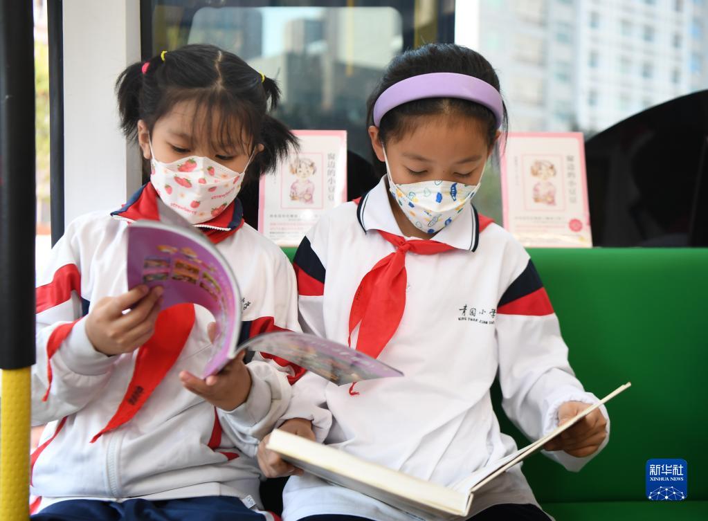 11月10日,學(xué)生在長(cháng)沙市青園友誼小學(xué)巴士圖書(shū)館內閱讀。