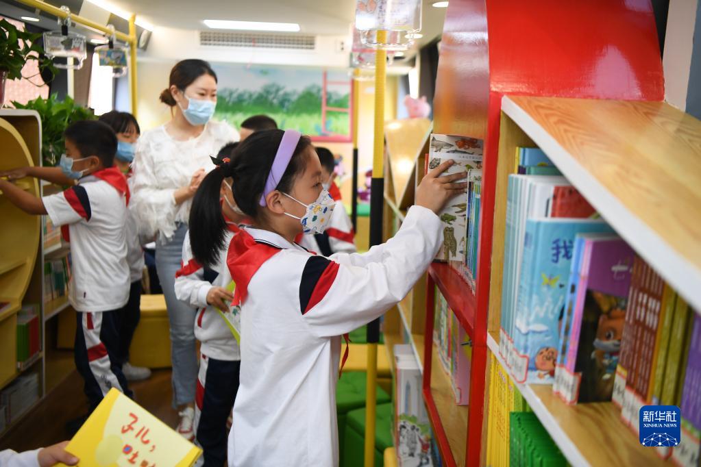 近日,長(cháng)沙市青園友誼小學(xué)的巴士圖書(shū)館開(kāi)館,吸引學(xué)生們前來(lái)閱讀、體驗。巴士圖書(shū)館由一臺廢棄巴士改造而成,目前共藏書(shū)4000多冊。