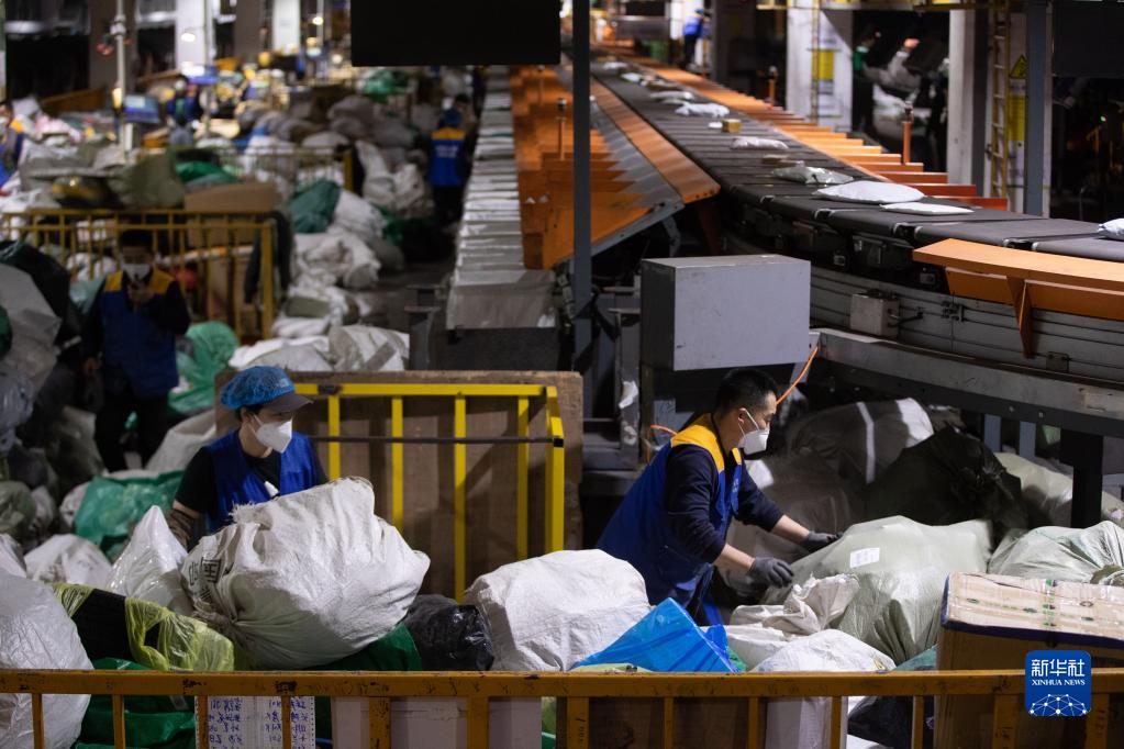 11月10日,工作人員在中國郵政哈爾濱郵區中心局郵件處理中心分揀快遞。
