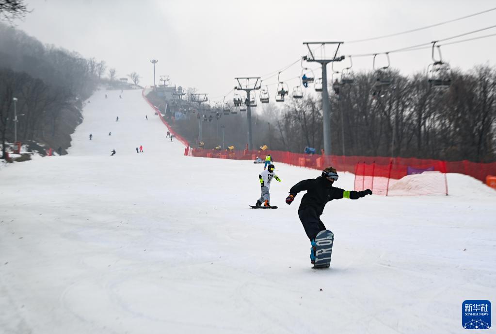 11月11日,滑雪愛(ài)好者在廟香山滑雪場(chǎng)滑雪。