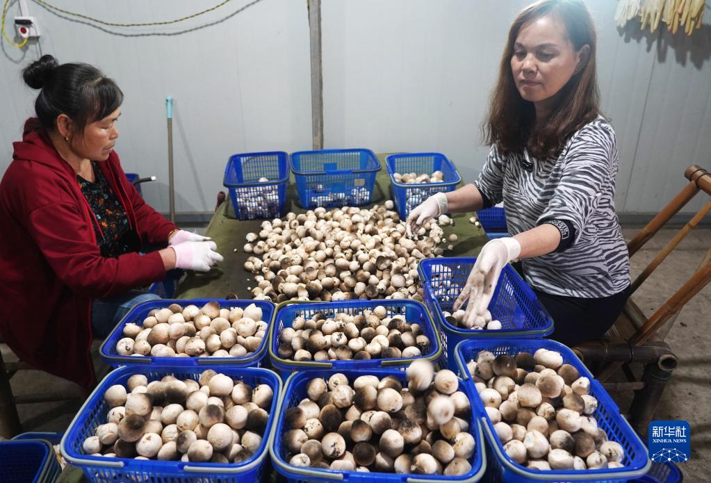 在南昌縣廣福鎮草菇產(chǎn)業(yè)基地,農民在分揀草菇(11月10日攝)。