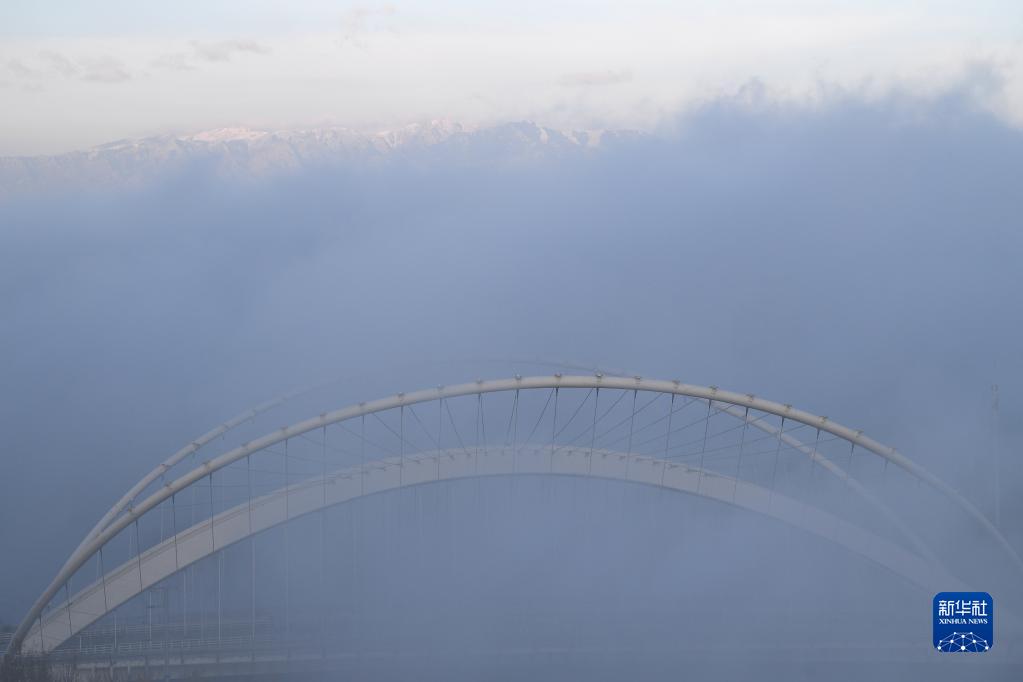 當日,“塞上湖城”寧夏銀川上空出現平流霧景觀(guān),宛若仙境。