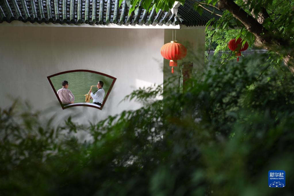 2021年5月5日,市民在合肥市環(huán)城公園吹奏樂(lè )器。