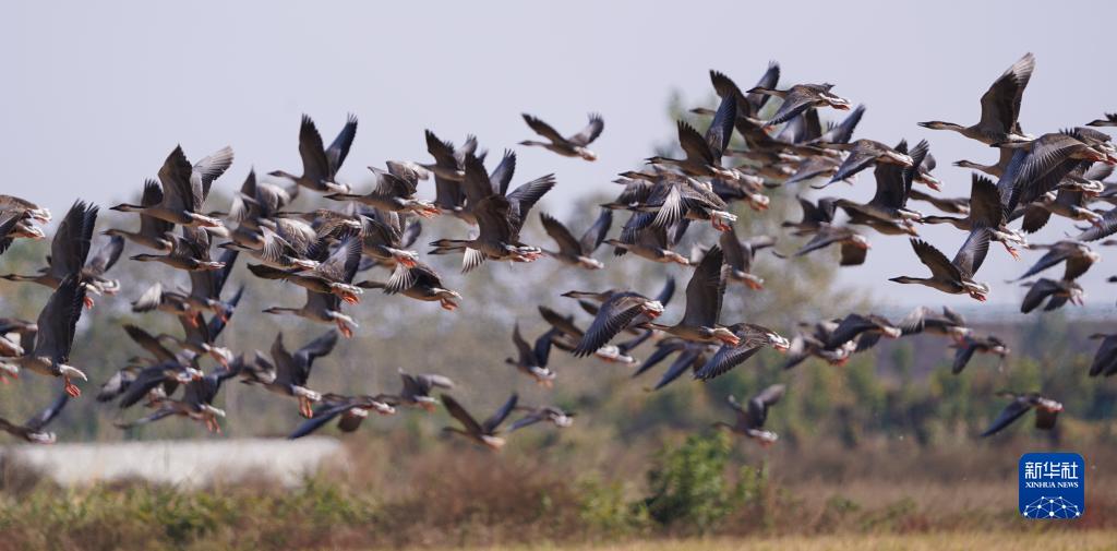 11月10日,大批鴻雁在南昌高新區五星白鶴保護小區飛翔。