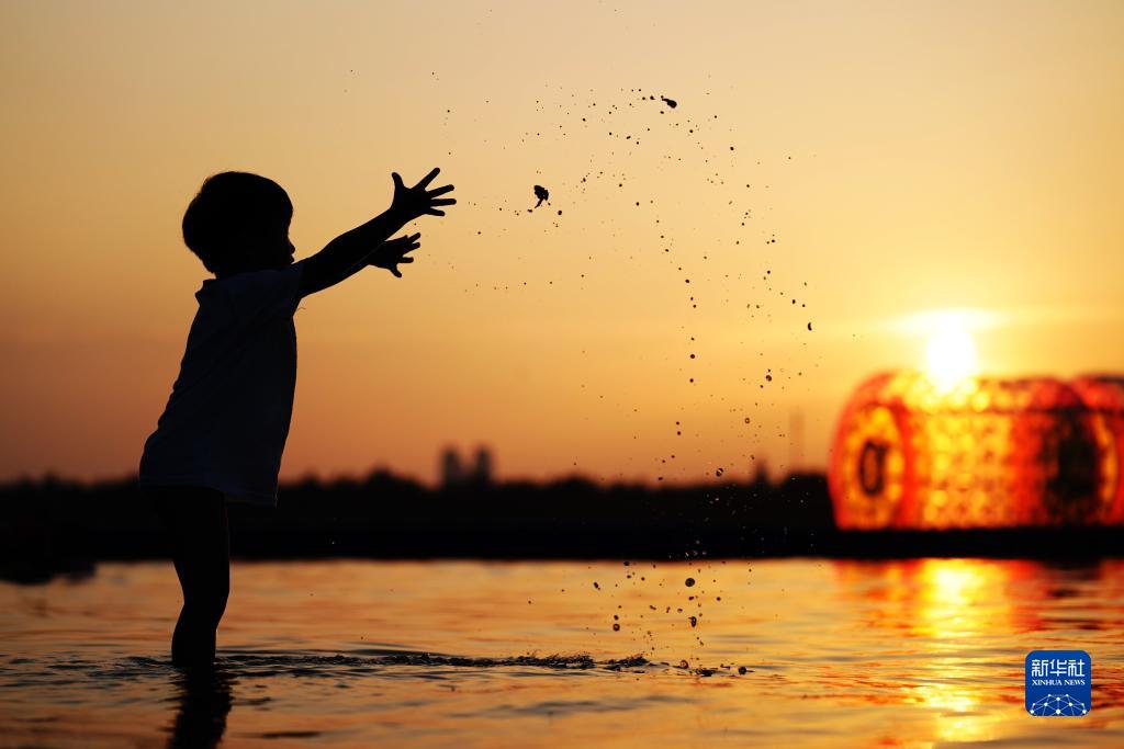 小朋友在哈爾濱松花江畔玩樂(lè )(2019年7月30日攝)。
