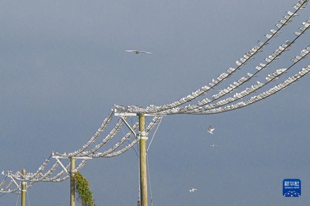 近期,不少候鳥(niǎo)進(jìn)入海南越冬。在首批“國際濕地城市”??谑械拿捞m區一處濕地,大批前來(lái)越冬的須浮鷗呈現“萬(wàn)鳥(niǎo)翔集”景象。鳥(niǎo)群時(shí)而群飛,時(shí)而整齊棲息,頗為壯觀(guān)。