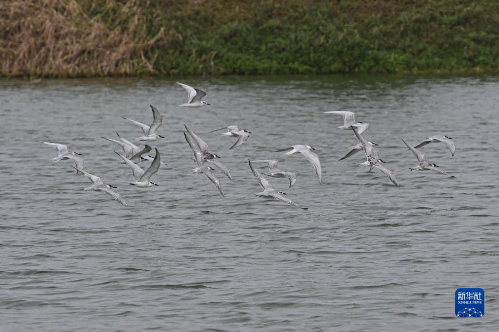 近期,不少候鳥(niǎo)進(jìn)入海南越冬。在首批“國際濕地城市”??谑械拿捞m區一處濕地,大批前來(lái)越冬的須浮鷗呈現“萬(wàn)鳥(niǎo)翔集”景象。鳥(niǎo)群時(shí)而群飛,時(shí)而整齊棲息,頗為壯觀(guān)。