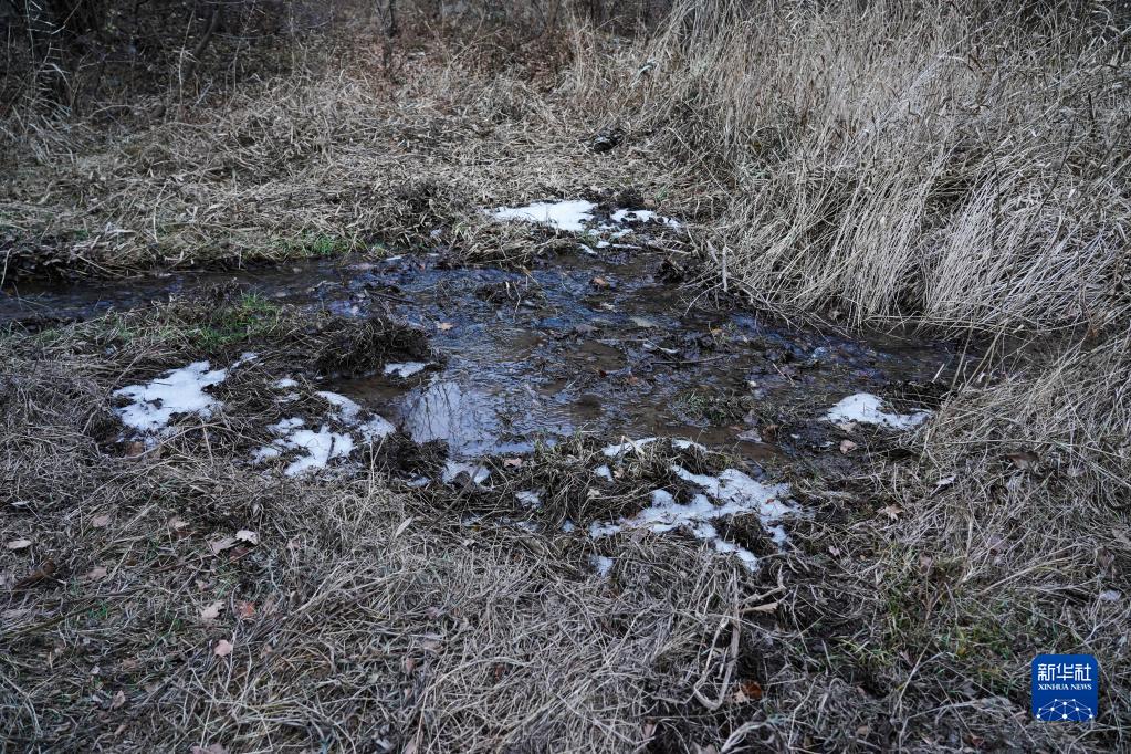 深山里的一段小溪已經(jīng)開(kāi)始結冰,水邊的土壤有疑似野生動(dòng)物的活動(dòng)痕跡(11月9日攝)。