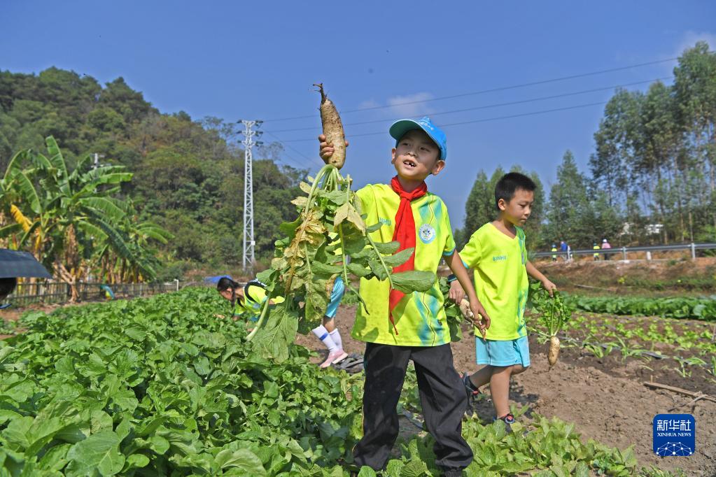 時(shí)下,廣西南寧進(jìn)入收獲季節,當地一些孩子趁著(zhù)周末走進(jìn)田間地頭,學(xué)習農事,體驗豐收的喜悅。
