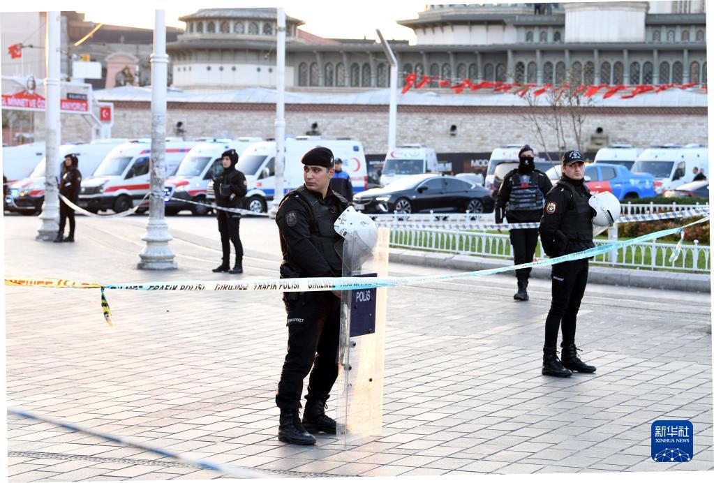 11月13日,警察在土耳其伊斯坦布爾市中心塔克西姆廣場(chǎng)警戒。