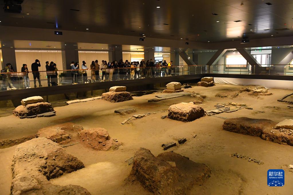 南宋德壽宮遺址博物館內展示的宮苑建筑遺跡(11月14日攝)。
