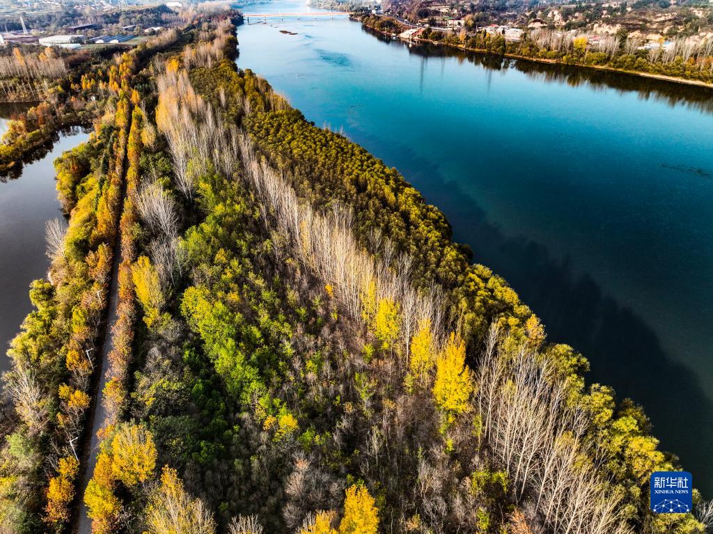 11月14日拍攝的河南黃河濕地國家級自然保護區濟源段景色(無(wú)人機照片)。
