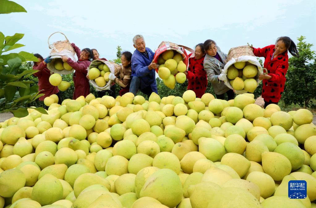 11月14日,四川省眉山市仁壽縣汪洋鎮五愛(ài)村蜜柚種植基地,村民在搬運蜜柚。