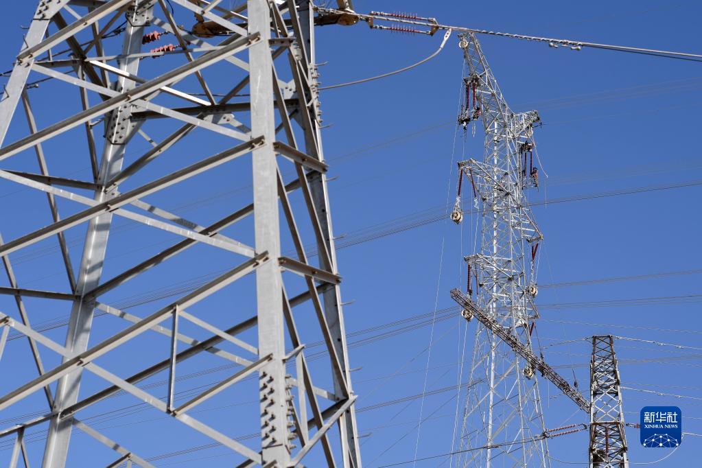 工人在寧夏典農220千伏輸變電工程跨越包蘭鐵路和俊福110千伏帶電線(xiàn)路施工現場(chǎng)施工(11月14日攝)。