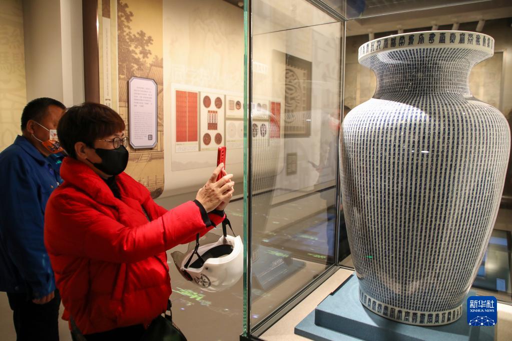 11月16日,游客在中國文字博物館續建工程展館內參觀(guān)拍照。