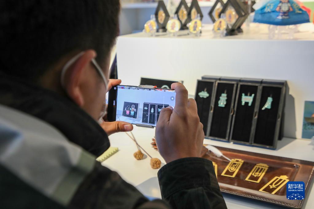 11月16日,游客在中國文字博物館續建工程展區內拍攝文創(chuàng )產(chǎn)品。