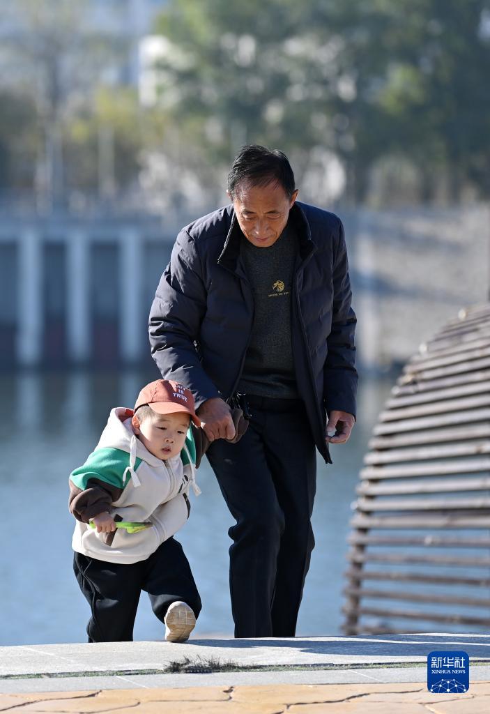 老人帶著(zhù)孩子在天津市紅橋區子牙河濱河公園內游覽(11月15日攝)。