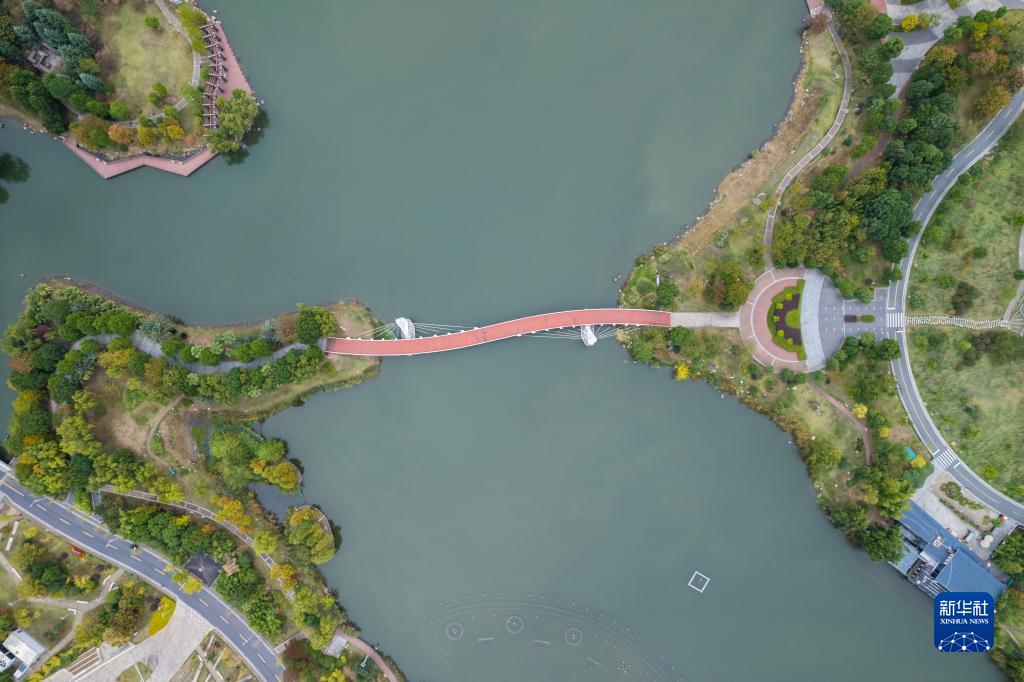 這是11月12日在常德城區拍攝的白馬湖文化公園景色(無(wú)人機照片)。