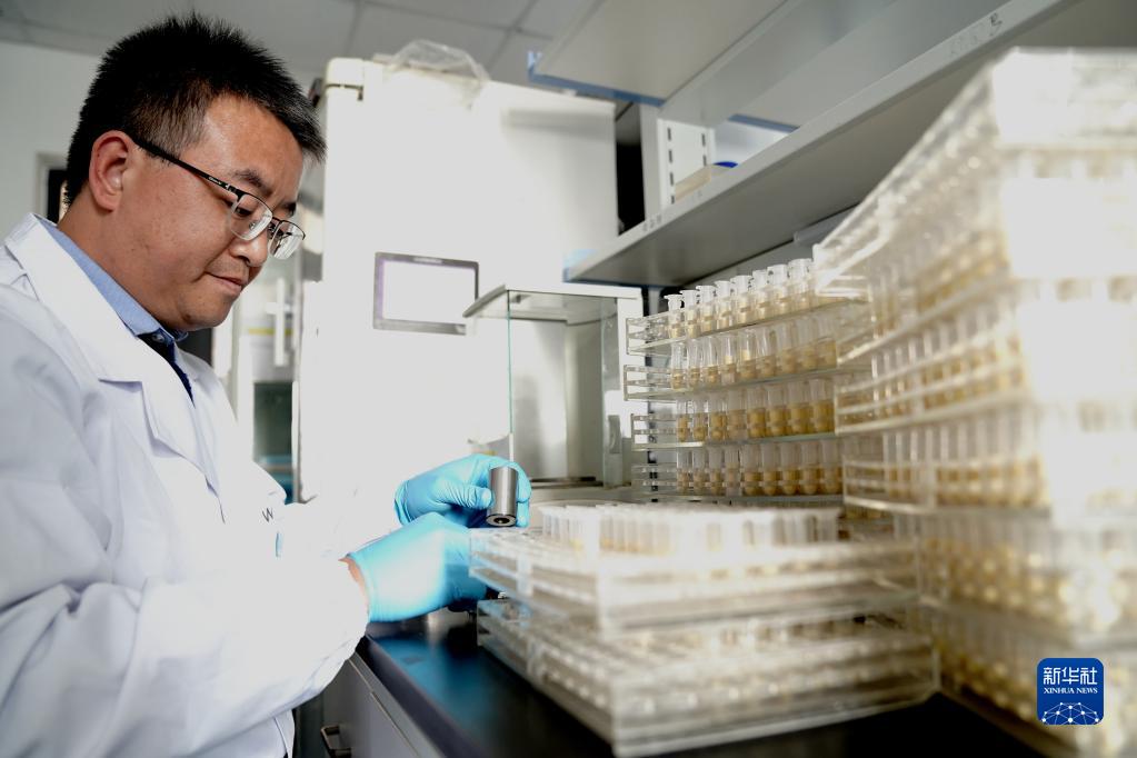 11月16日,中國科學(xué)院分子植物科學(xué)卓越創(chuàng )新中心副研究員王海海在進(jìn)行玉米蛋白測定前的包樣工作。
