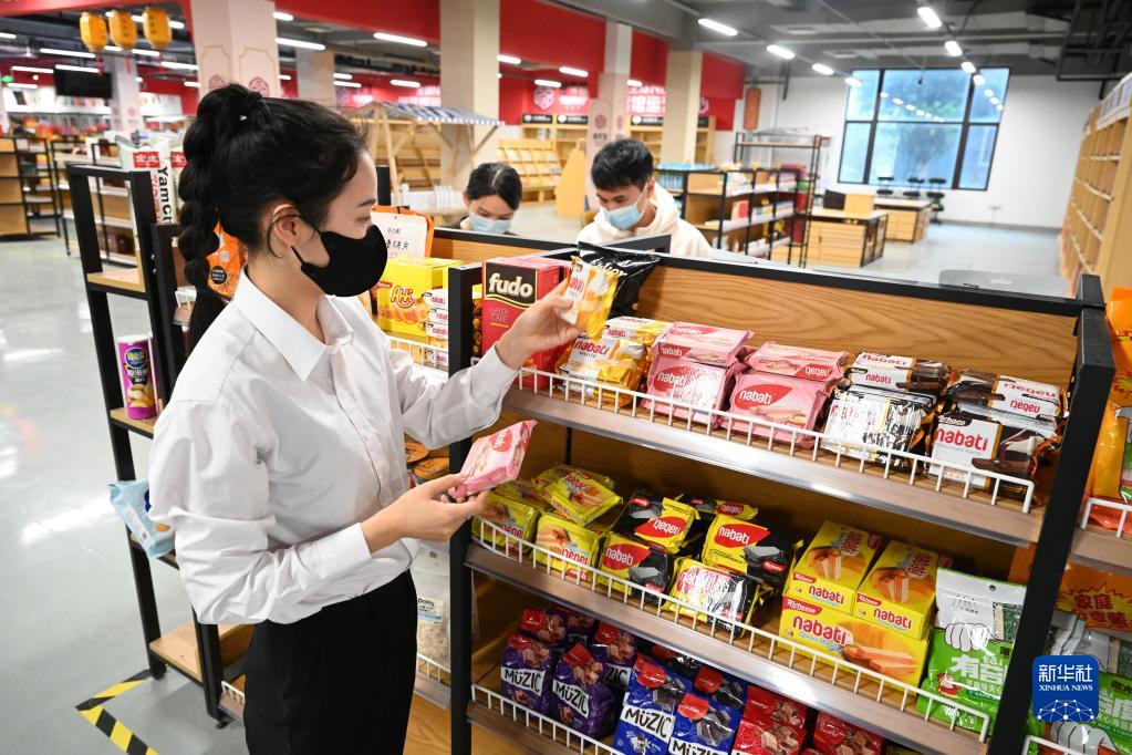 11月16日,參觀(guān)者在福州元洪投資區元洪食品數字經(jīng)濟產(chǎn)業(yè)中心的元洪在線(xiàn)展示體驗中心選購印尼食品。
