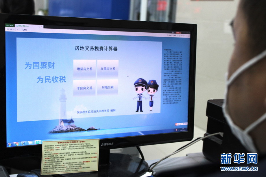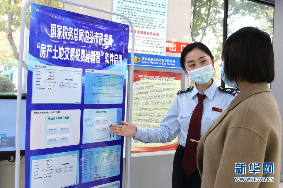 11月16日,國家稅務(wù)總局泊頭市稅務(wù)局工作人員運用“房產(chǎn)土地交易稅費計算器”軟件進(jìn)行“一鍵計稅”。新華網(wǎng)發(fā)(馮悅 攝)