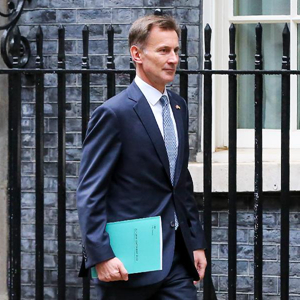 11月17日,在英國倫敦,英國財政大臣杰里米·亨特離開(kāi)辦公室,準備前往議會(huì )公布秋季預算案。