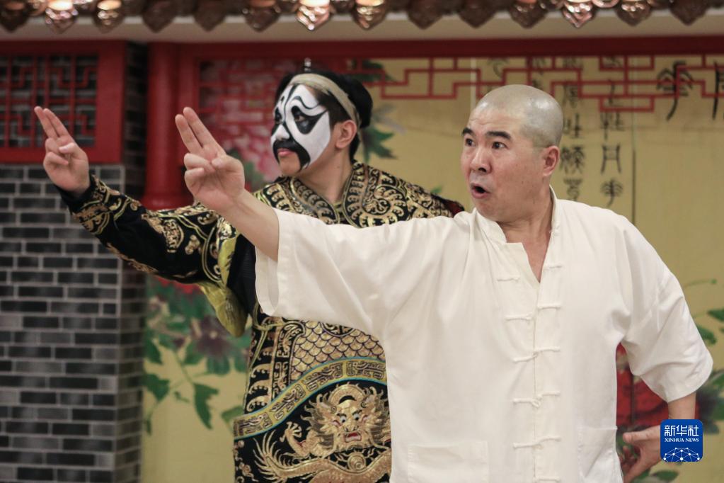 11月14日,沈陽(yáng)京劇院老師劉大強(右)指導李文龍學(xué)習京劇《霸王別姬》。