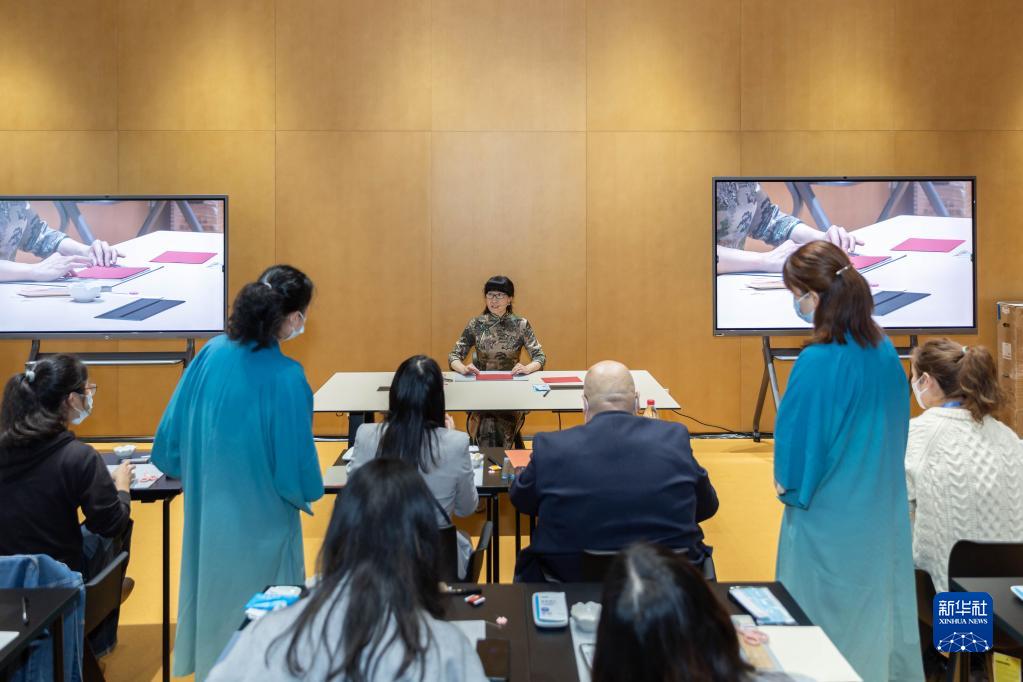 當日,“古今相映,樂(lè )創(chuàng )未來(lái)——非物質(zhì)文化遺產(chǎn)系列推廣項目”活動(dòng)在上海圖書(shū)館東館開(kāi)幕?;顒?dòng)現場(chǎng)邀請體驗者參與體驗“古籍修復”非遺技藝,讓人們感受傳統文化的魅力。新華社記者 王翔 攝