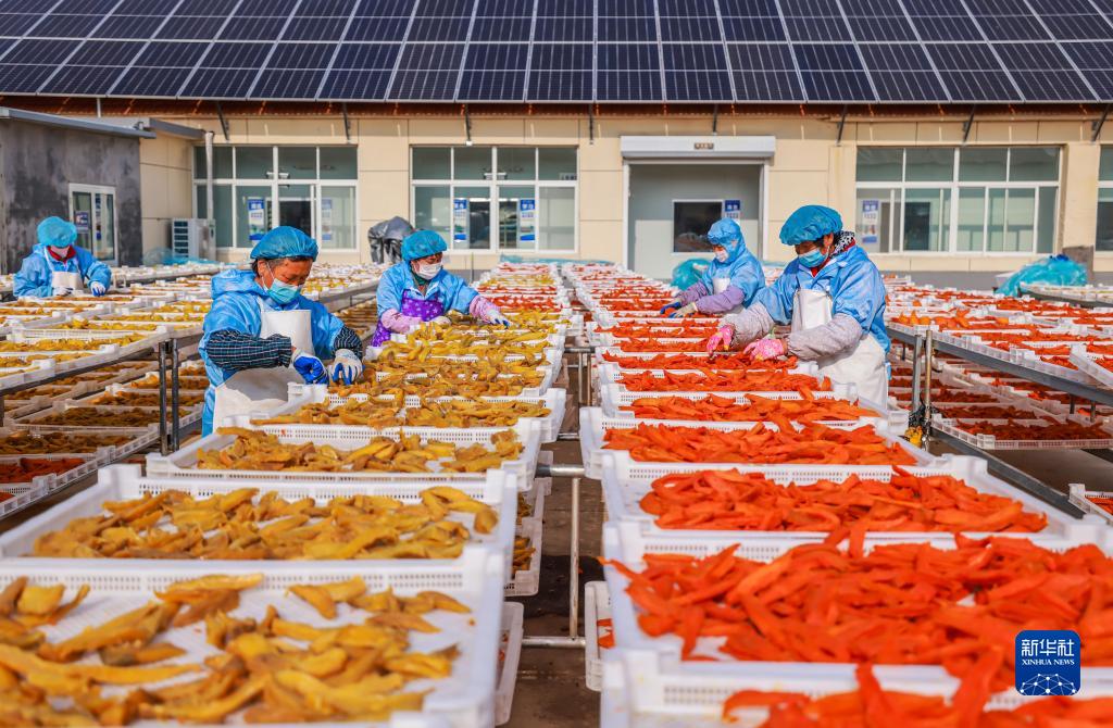 11月19日,在山東省榮成市埠柳鎮東初家村一家甘薯加工企業(yè),工人利用晴好天氣,抓緊晾曬甘薯干。近年來(lái),榮成市埠柳鎮成立甘薯產(chǎn)業(yè)合作聯(lián)社,以農產(chǎn)品加工企業(yè)帶動(dòng)周邊農村進(jìn)行甘薯規?;N植,帶動(dòng)農村集體經(jīng)濟的發(fā)展。