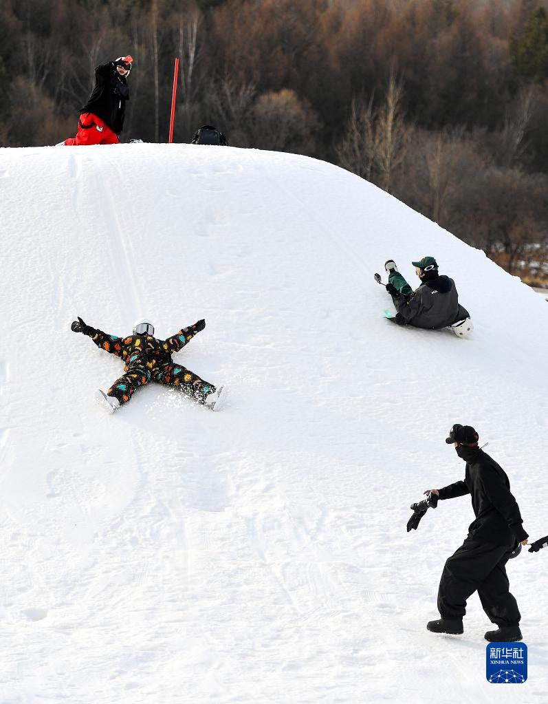 11月19日,在萬(wàn)科松花湖度假區滑雪場(chǎng),幾名滑雪愛(ài)好者在雪地玩耍。