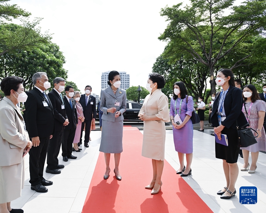 當地時(shí)間11月19日上午,國家主席習近平夫人彭麗媛在泰國總理夫人娜拉蓬陪同下參觀(guān)甘拉雅尼音樂(lè )學(xué)院。這是彭麗媛抵達時(shí),娜拉蓬等熱情迎接。