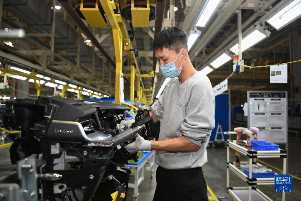 11月19日,工人在領(lǐng)克汽車(chē)寧波梅山工廠(chǎng)的總裝車(chē)間作業(yè)。