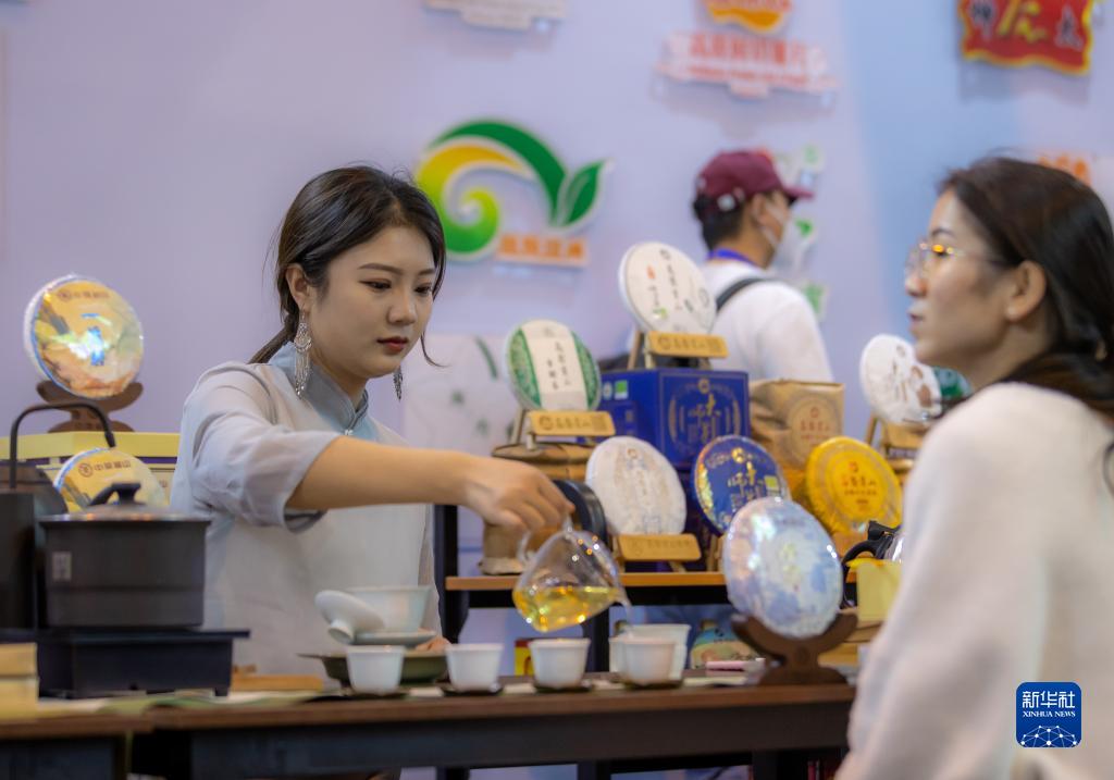 11月19日,茶藝師在南博會(huì )現場(chǎng)展示茶葉產(chǎn)品。
