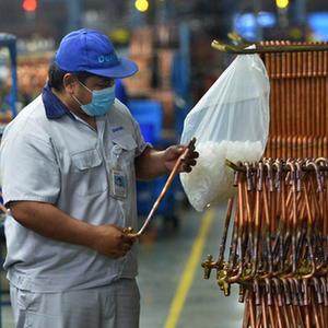 11月8日,在位于泰國羅勇府的泰中羅勇工業(yè)園,工人在盾安金屬(泰國)有限公司生產(chǎn)線(xiàn)上工作。