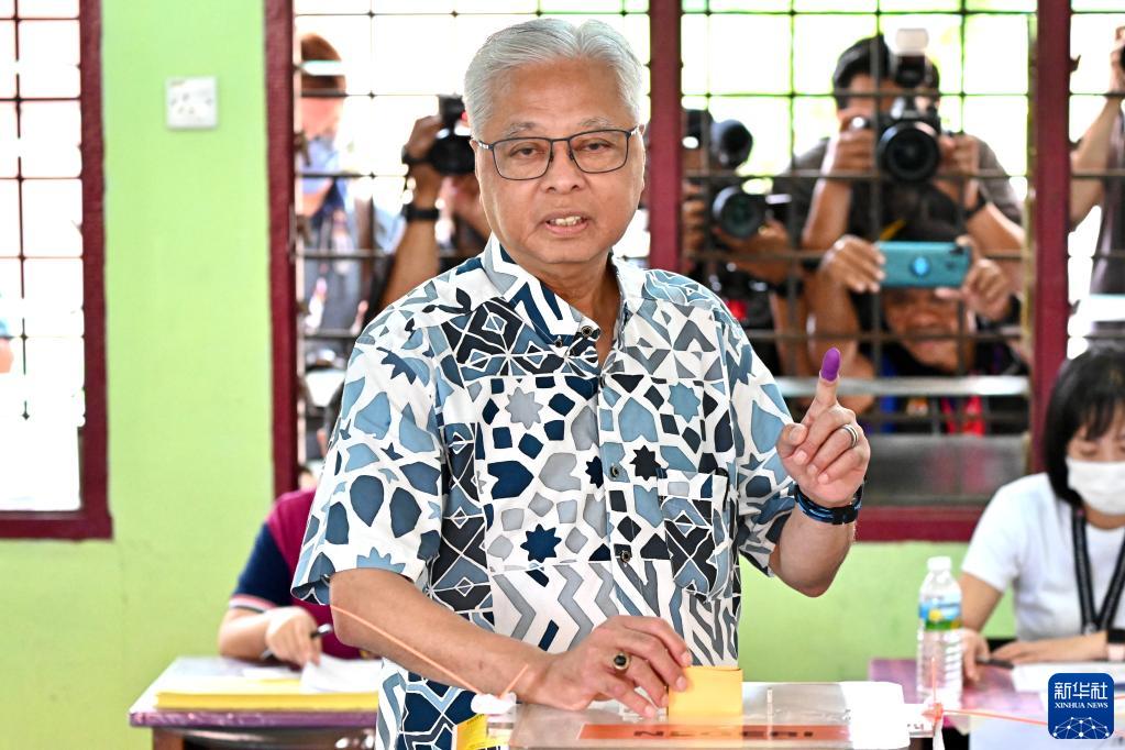 11月19日,國民陣線(xiàn)候選人伊斯邁爾在馬來(lái)西亞彭亨州貝拉的一處投票站投票。