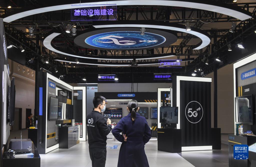 11月20日,參觀(guān)者在“2022中國5G+工業(yè)互聯(lián)網(wǎng)”成果展展廳參觀(guān)。