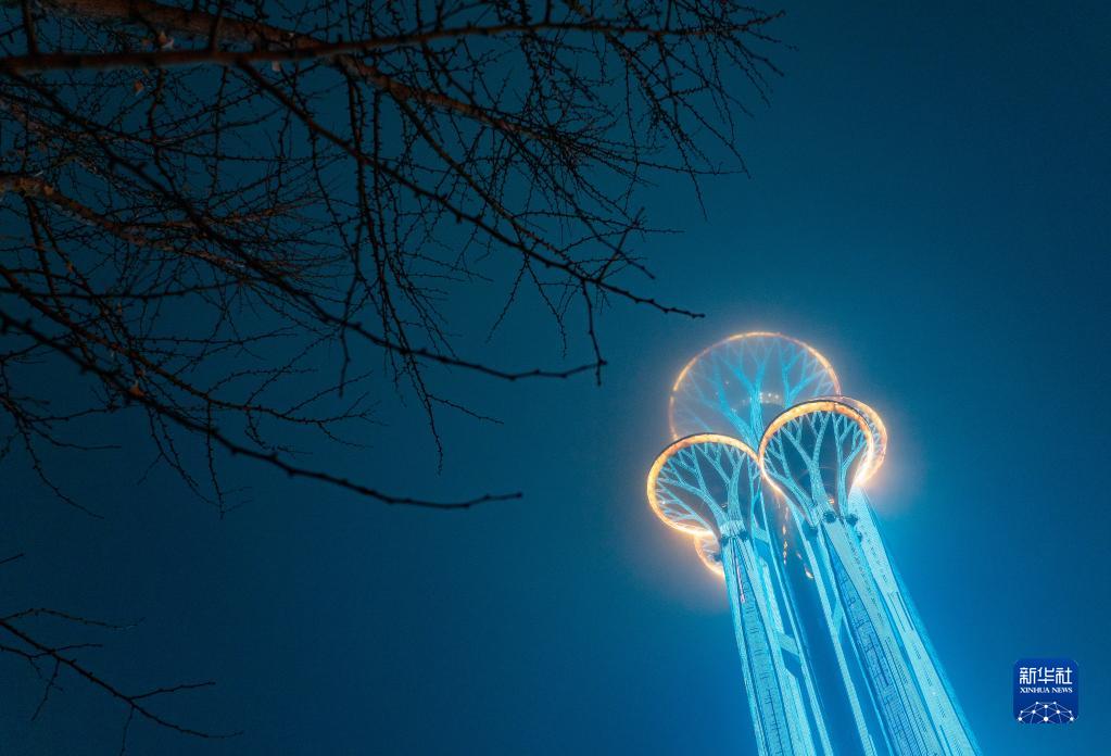 11月20日,北京奧林匹克塔為世界兒童日亮燈。