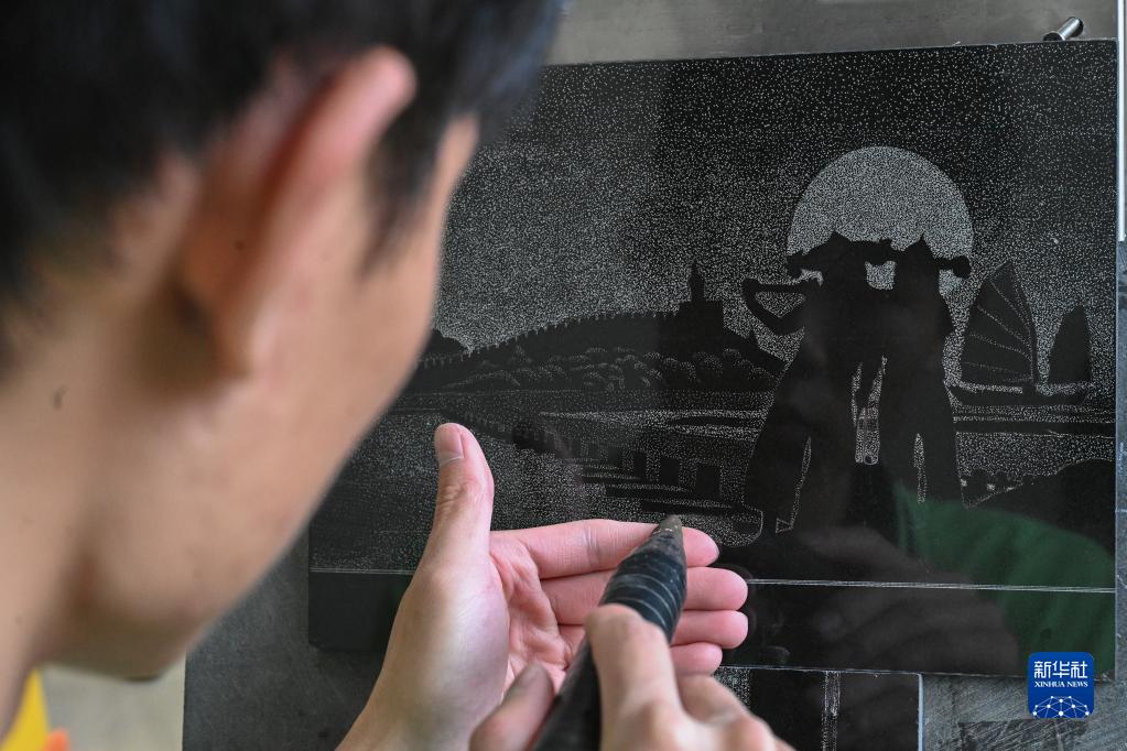 11月20日,聽(tīng)障學(xué)生在泉州市特殊教育學(xué)校聽(tīng)障職教大樓里上影雕課。