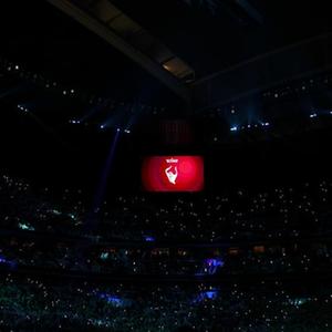 11月20日,開(kāi)幕式現場(chǎng)大屏幕上出現本屆世界杯吉祥物。