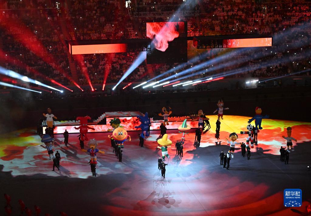 當日,2022年卡塔爾世界杯開(kāi)幕式在海灣球場(chǎng)舉行。