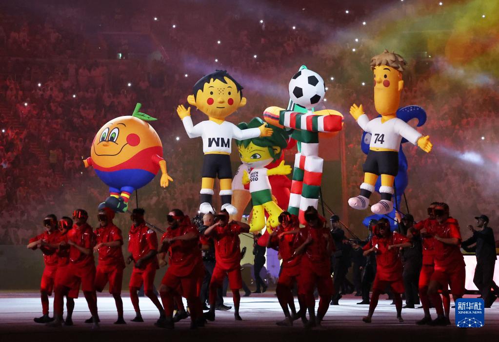 11月20日,歷屆世界杯吉祥物在開(kāi)幕式上。